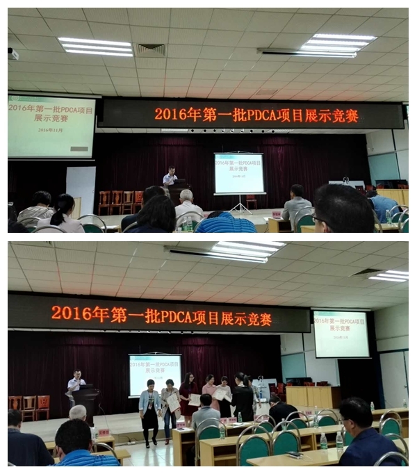 2015年底,評審辦組織全院開展持續(xù)改進(PDCA)活動,對醫(yī)院各個工作環(huán)節(jié)進行審視,找出工作環(huán)節(jié)的缺陷開展PDCA項目予以持續(xù)改進,醫(yī)院各科室積極踴躍參加,共計36個項目。歷經(jīng)一年的持續(xù)改進工作,于2016年8月份對36個PDCA進行驗收,擇優(yōu)選取15 個項目進行展示競賽。