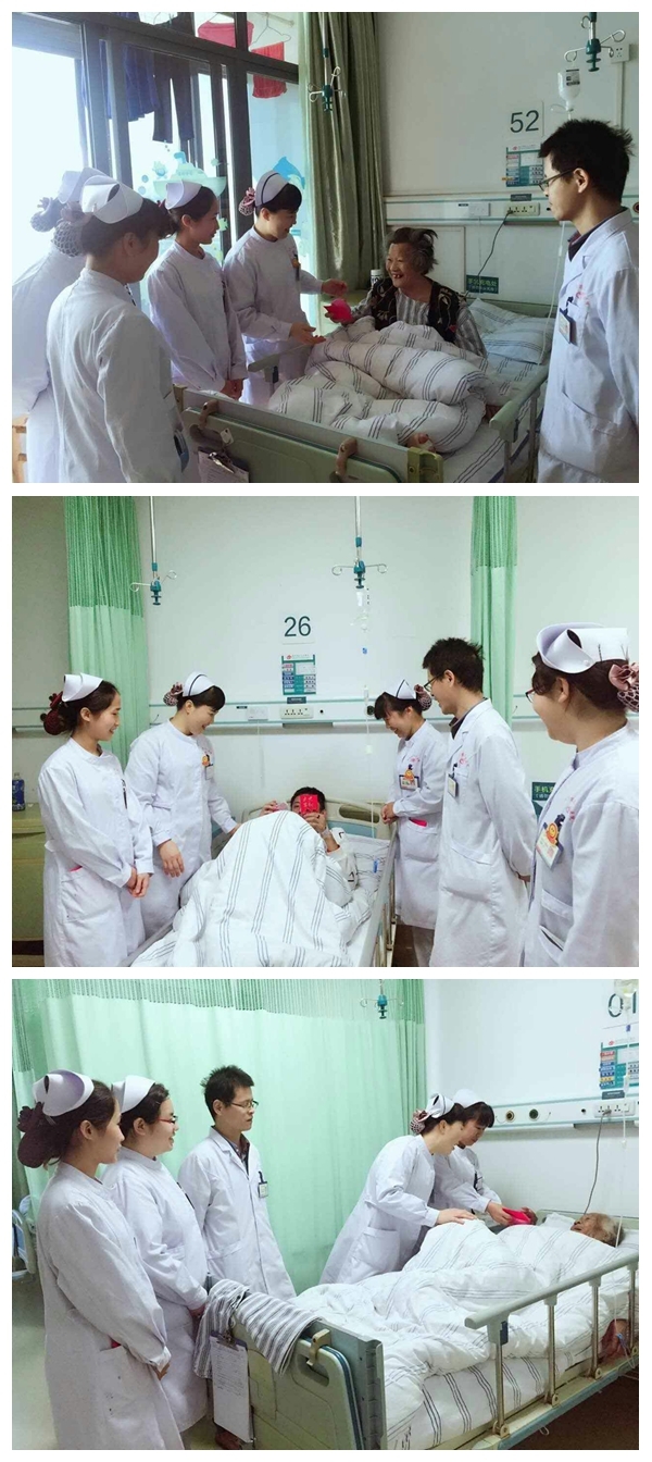 黃秀芹護長和科室同事們將特別準備的禮物一一送至除夕夜仍然還在科室住院的所有病人手上,將科室全體醫(yī)護人員的溫暖送到病人心中,鼓勵他們積極治療、安心養(yǎng)病,祝福他們早日康復(fù)、與家人團聚。貼心的話語猶如冬日暖陽,醫(yī)護人員的親切關(guān)懷,令病人和家屬高興不已、感動萬分,并連聲道謝。