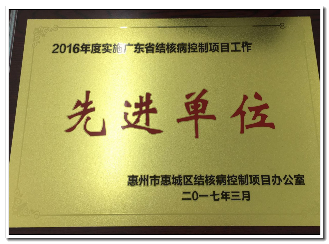 我院榮獲2016年度實(shí)施廣東省結(jié)核病控制項(xiàng)目工作先進(jìn)單位稱號(hào)