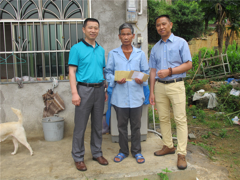2017年5月19日早上,天空雖然下起了小雨,但也阻擋不了他們下鄉(xiāng)扶貧計(jì)劃。經(jīng)過(guò)1個(gè)半小時(shí)的顛簸車程,他們來(lái)到了蘆洲鎮(zhèn)嵐石村結(jié)對(duì)幫扶對(duì)象張運(yùn)強(qiáng)的家中。風(fēng)雨中帶來(lái)的關(guān)愛(ài)最令人感動(dòng),張運(yùn)強(qiáng)如見(jiàn)到親戚似的,熱情地迎接他們。