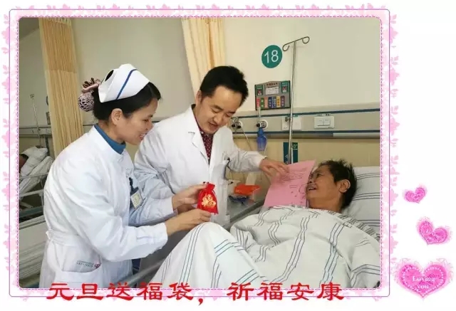 為了慰藉病友們苦楚的心靈,醫(yī)護人員在做好本職工作,優(yōu)化服務外,更是巧思妙想,在人文關懷方面做了諸多嘗試。如購置助行器、坐便器;發(fā)放問候卡、宣教單;開展“溫馨小家”、工休座談會;開設醫(yī)患溝通欄,每月更新內容,宣傳科室先進技術、健康教育、家屬感謝、節(jié)日慰問等,給人以信心、愛心;在平安夜到來之際,護士們集思廣益,開展“寫祝福,求平安”和送“平安果”的活動。春節(jié)時期,科室特意掛上小燈籠,貼上祝??祻偷臉苏Z。在護士長的帶領下,集體向病友們拜年,送上寓意吉祥的桔子。2017年元旦,在李雪松主任的帶領下,醫(yī)護人員集體到病房問候患者,送上了寓意吉祥如意的定制福袋。福袋雖小,樸實無華,卻凝聚了神經外科全體醫(yī)護人員的美好祝愿,也表達了一份仁心仁愛、尊重生命的人文關懷,獲得了病友們的贊譽。