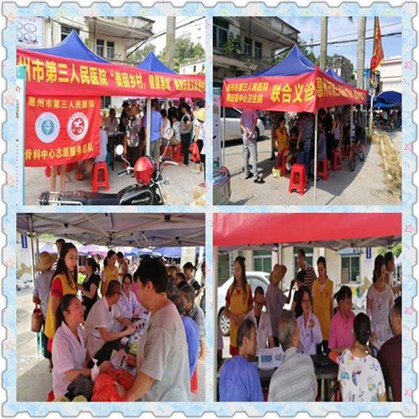 2017年8月16日,“美麗鄉(xiāng)村,健康惠城”健康扶貧巡回義診在橫瀝鎮(zhèn)老政府門口舉行,惠州市第三人民醫(yī)院組織骨科醫(yī)學中心、心血管醫(yī)學中心、眼科和乳腺科等??浦驹刚吲c橫瀝鎮(zhèn)中心衛(wèi)生院共同為周邊村民提供義診咨詢志愿服務。此項活動的開展,極大的方便了當?shù)厝罕娋歪t(yī),義診隊員的熱情服務和耐心解答群眾咨詢深受廣大群眾的好評和贊揚。