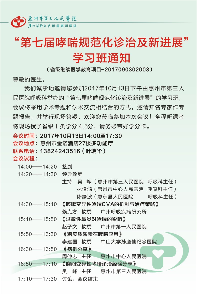 省級(jí)繼續(xù)教育項(xiàng)目--“第七屆哮喘規(guī)范化診治及新進(jìn)展”學(xué)習(xí)班邀請(qǐng)函
