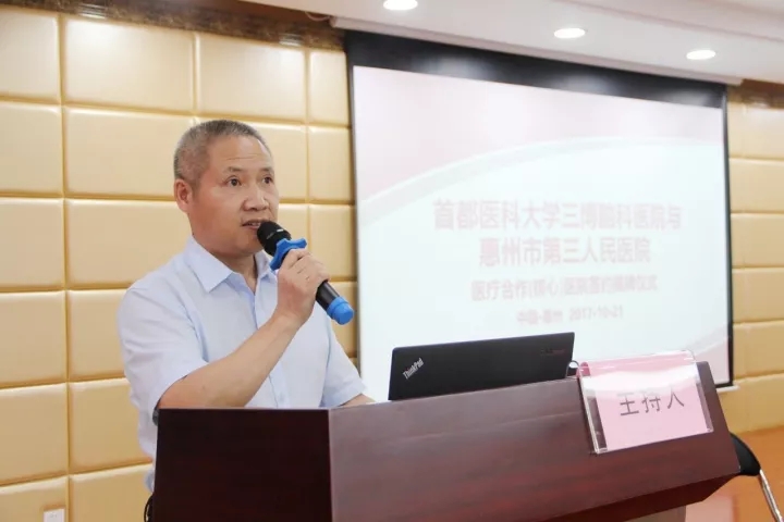 他指出,此次醫(yī)療合作醫(yī)院簽約揭牌儀式,不僅是惠州三院同時(shí)也是惠州市衛(wèi)計(jì)系統(tǒng)的一件大事。為進(jìn)一步貫徹落實(shí)國家、省、市醫(yī)改的有關(guān)精神,構(gòu)建合理的分級(jí)診療體系,惠州三院主動(dòng)走出廣東,與首都醫(yī)科大學(xué)三博腦科醫(yī)院攜手合作,希望借助三博腦科醫(yī)院在神經(jīng)醫(yī)學(xué)領(lǐng)域有精湛的醫(yī)療技術(shù)、優(yōu)秀的專家團(tuán)隊(duì),豐富的管理經(jīng)驗(yàn),通過專家資源下沉、學(xué)術(shù)交流、進(jìn)修培訓(xùn)等多種形式的合作,實(shí)現(xiàn)跨省市醫(yī)療機(jī)構(gòu)的合作交流,為惠州地區(qū)疑難腦病患者就醫(yī)提供便利。