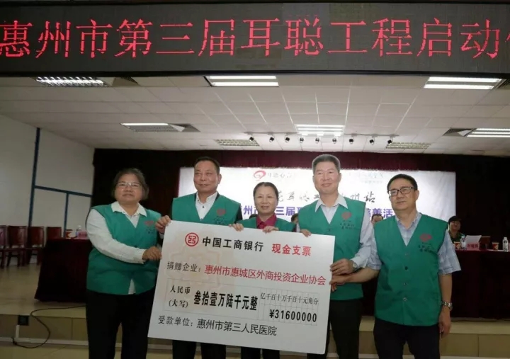 惠州市惠城區(qū)外商投資企業(yè)協(xié)會(huì)楊偉定常務(wù)副會(huì)長(zhǎng)也表示將與耳聰工程共襄慈善盛舉,繼續(xù)支持該公益事業(yè)的發(fā)展。近年來,惠州市惠城區(qū)外商投資企業(yè)協(xié)會(huì)積極參與社會(huì)公益事業(yè),廣受社會(huì)好評(píng)!