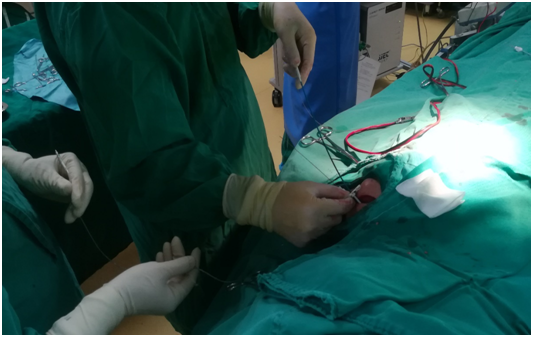 按傳統(tǒng)經(jīng)驗(yàn),此類患者只能安置單腔起搏器,即非生理性起搏。但由于陳先生已經(jīng)出現(xiàn)心臟擴(kuò)大(左室大小接近60mm)病表現(xiàn),長(zhǎng)期以此單腔起搏必將加劇心臟功能異常。在心血管中心主任肖純副院長(zhǎng)及心內(nèi)科鐘思干主任教授的主持討論下,醫(yī)生團(tuán)隊(duì)決定為陳叔實(shí)施目前最先進(jìn),也最合適的希氏束起搏器植入術(shù)。