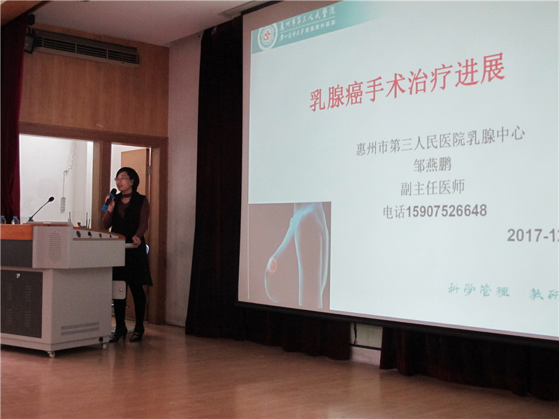 2017年12月6日下午,惠州三院婦產(chǎn)科大科主任吳維光博士、乳腺科鄒燕鵬副主任醫(yī)師應邀走進惠州市第八中學,為女教師們分享宮頸癌篩查知識及乳腺癌診治新理念。