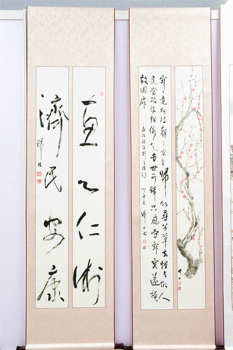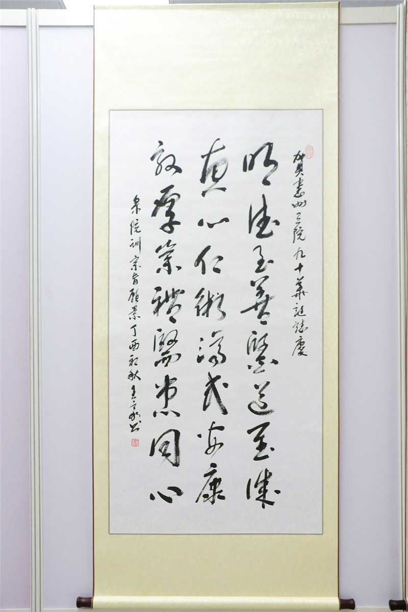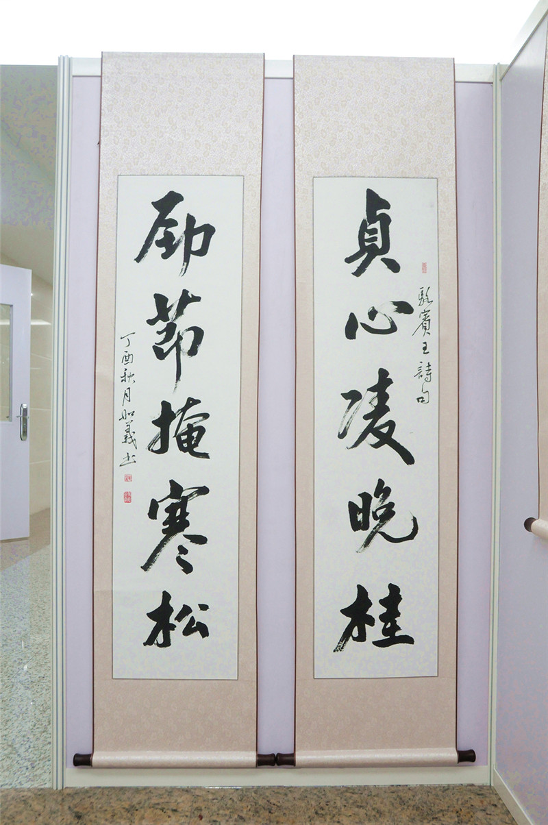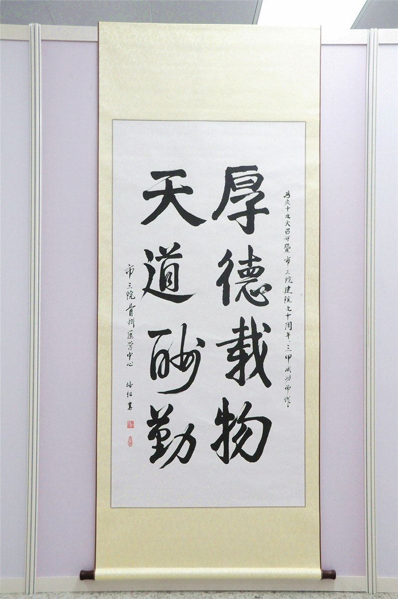 在現(xiàn)場展出的十余幅書畫作品,或鐵畫銀鉤,或矯若游龍,或鸞飄鳳泊,或清新淡雅。氣韻渾然天成,妙趣匠心獨具,多才多藝的三院人為惠州三院的90周年華誕獻上了珍貴的禮物!