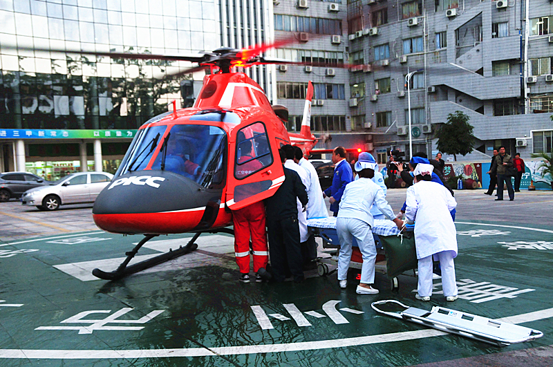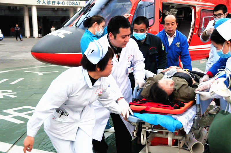 運(yùn)載傷者的直升機(jī)落地后,醫(yī)護(hù)人員立刻將傷者周女士送到急救室。接診醫(yī)生發(fā)現(xiàn)傷者雙下肢肌力、感覺消失,初步診斷為胸腰段脊髓損傷,傷勢十分嚴(yán)重。