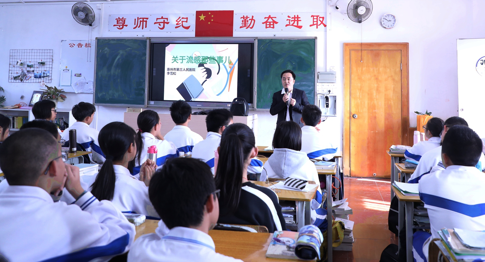 為了提高青少年預(yù)防流感的保健意識(shí),惠州市政協(xié)委員、惠州市第三人民醫(yī)院神經(jīng)醫(yī)學(xué)中心主任李雪松博士受邀走進(jìn)惠州市第一中學(xué),為學(xué)生們宣講流感的防治知識(shí)。