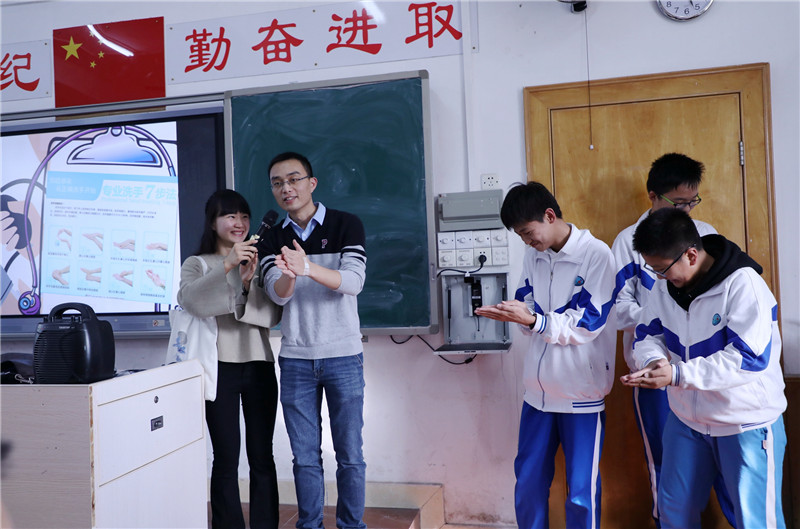 課后,惠州三院感控醫(yī)生劉惜弟和感控護(hù)士李素美進(jìn)行了“七步洗手法”的現(xiàn)場(chǎng)教學(xué),將醫(yī)院的洗手要求帶到了學(xué)校,加深學(xué)生們對(duì)“徹底洗手”的認(rèn)識(shí)。此外,還為部分學(xué)生的手及物件進(jìn)行了標(biāo)本采樣,以便了解學(xué)生們攜帶微生物的情況。