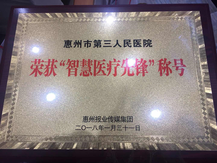 2018年1月31日,在由惠州報業(yè)集團舉辦的讀者票選“2017年度智慧醫(yī)療哪家強”頒獎活動中,惠州市第三人民醫(yī)院以總票數第一的好成績榮獲“智慧醫(yī)療先鋒”稱號!