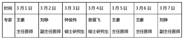 義診時(shí)間:3.1~3.7 每天上午08:00-11:30。