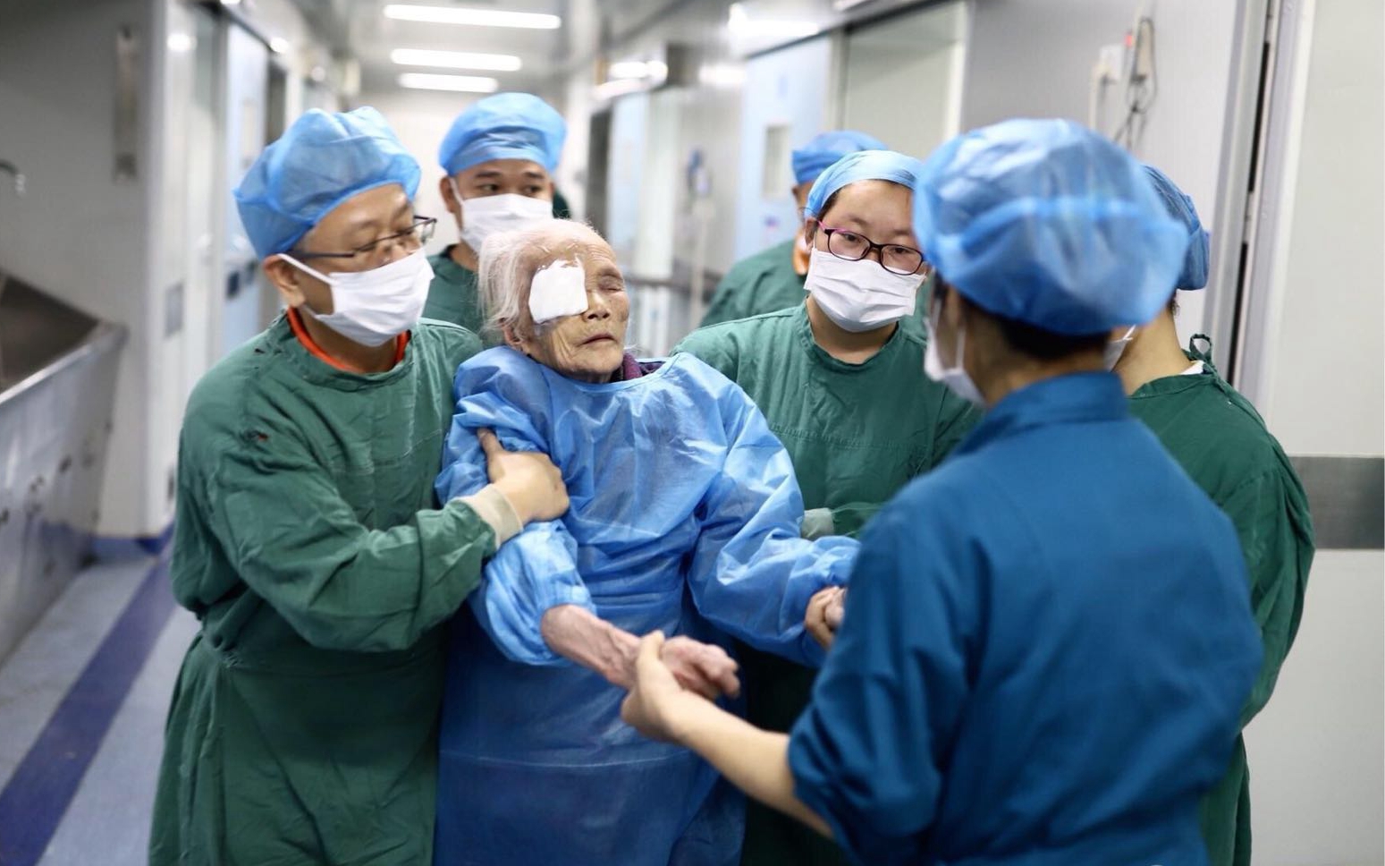 90多歲阿婆在眾人攙扶下,順利完成手術(shù)