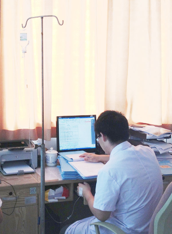 劉洋醫(yī)生帶病堅持在工作崗位上