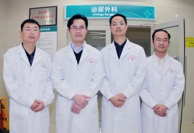 泌尿外科楊偉忠主任(左二),鄧錦標副主任醫(yī)師(右二),田生平副主任醫(yī)師(右一),張東江副主任醫(yī)師(左一)