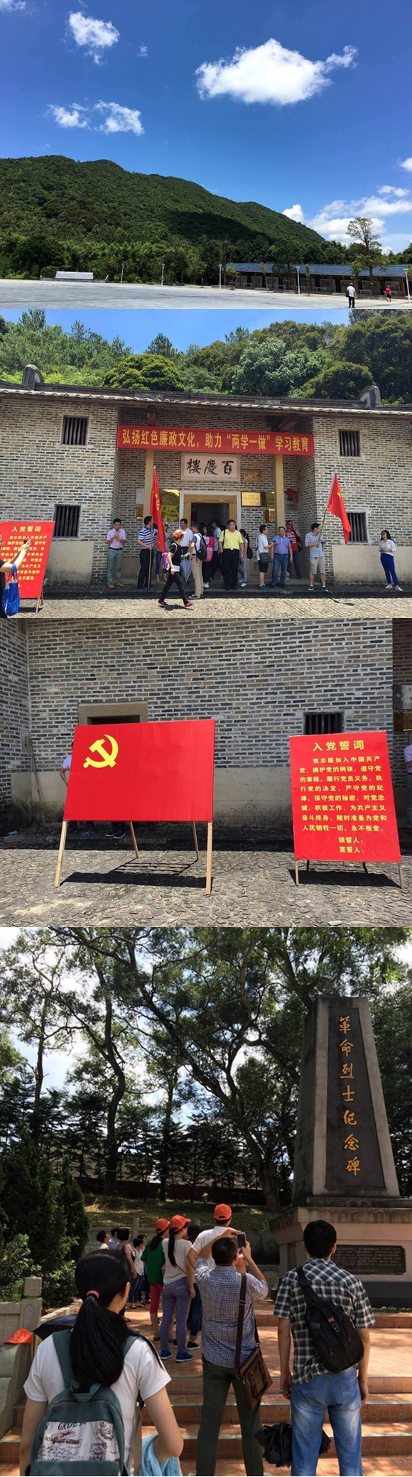 我們參觀了中洞村百慶樓、紅軍井等革命根據(jù)地遺址。全體黨員在百慶樓門(mén)口舉行重溫入黨宣誓儀式,之后瞻仰了革命烈士紀(jì)念碑,大家在紀(jì)念碑前三鞠躬,他們?yōu)槊褡濯?dú)立與人民解放而英勇獻(xiàn)身,人民永遠(yuǎn)不會(huì)忘記他們!