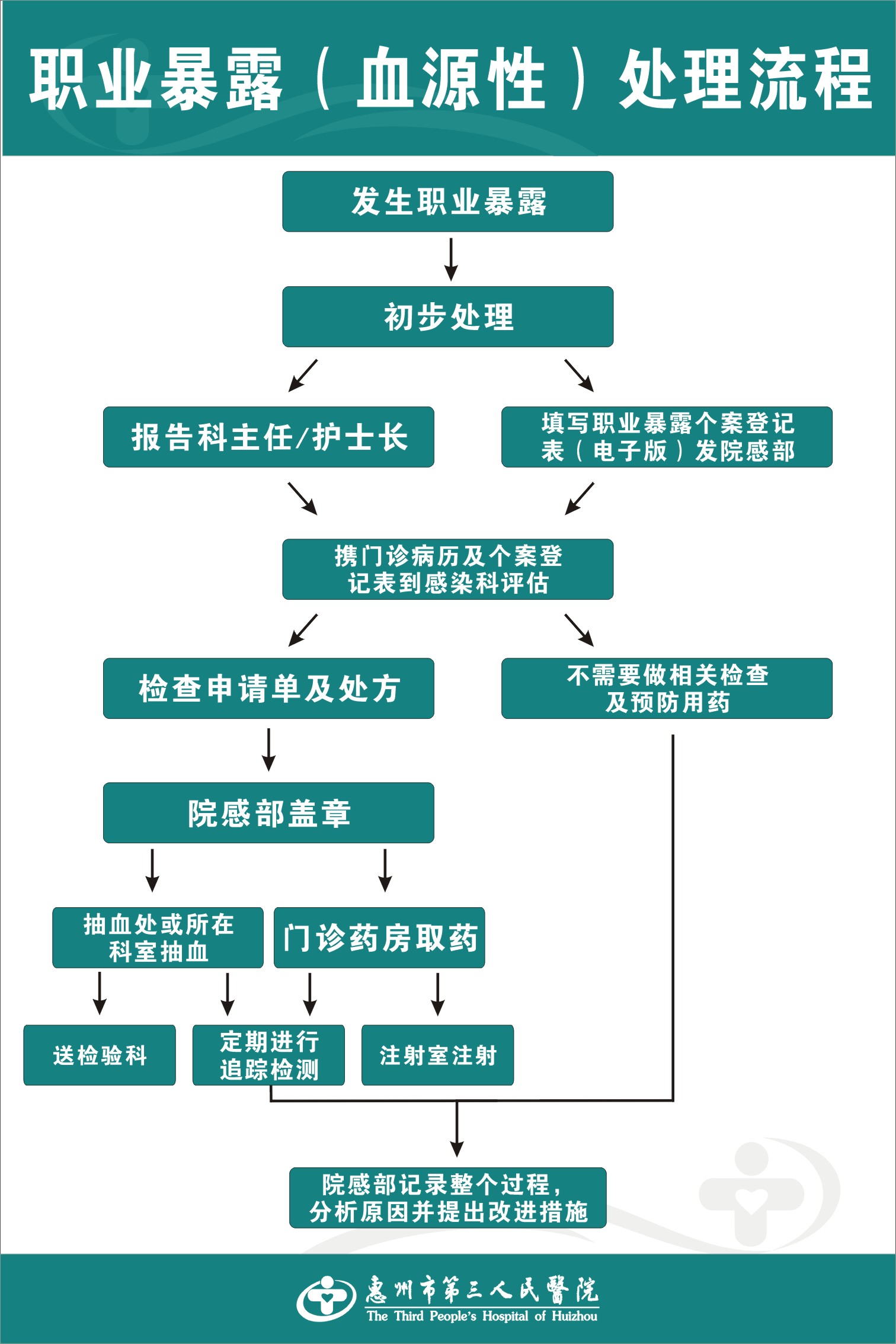 如何預(yù)防和處理職業(yè)暴露非常重要,特別是工作期間,正確掌握銳器傷HIV、HBV/HCV職業(yè)暴露處理流程擠壓傷口(傷口旁端輕輕擠壓)→肥皂水+流動(dòng)水反復(fù)沖洗(粘膜被污染時(shí),生理鹽水反復(fù)沖洗)→消毒(0.5%碘伏、75%酒精)→包扎→報(bào)告→相關(guān)抗體跟蹤檢測(cè)(接種疫苗或預(yù)防用藥,必要時(shí)評(píng)估)→心理干預(yù)。(綜合病區(qū) 陳貴發(fā))