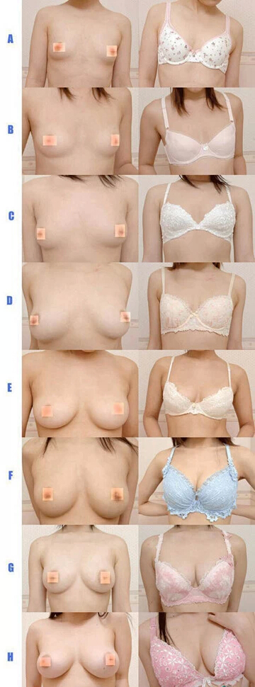 女人胸部與文胸罩杯大小對(duì)比真人示意圖: