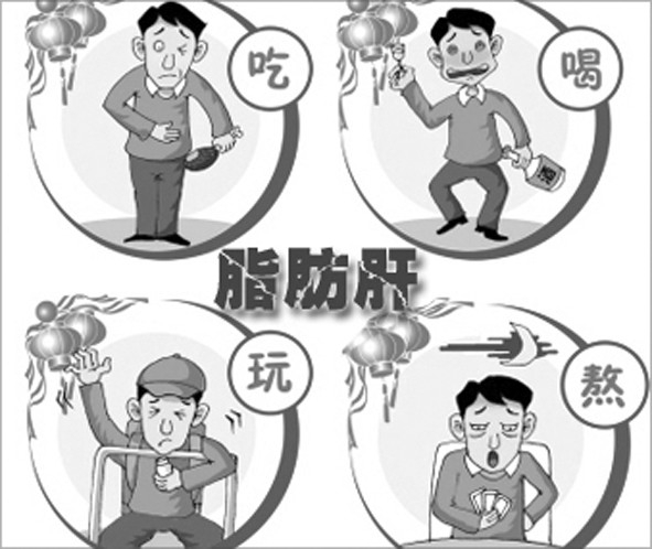 脂肪肝是一種最常見的肝臟異常,由于過量飲酒、肥胖、蛋白質(zhì)缺乏、妊娠以及慢性肝病、糖尿病、心力衰竭和藥物毒性作用等引起的肝細胞內(nèi)脂肪堆積。輕度脂肪肝多無自覺癥狀,主要在超聲體檢中發(fā)現(xiàn)。較重病例最常見的表現(xiàn)為肝大,肝區(qū)痛及壓痛,少數(shù)患者可有輕度黃疸,脾大,以及男性陽痿和女性月經(jīng)過多或閉經(jīng)等。嚴重的脂肪肝患者最后會演變成肝硬化。肥胖而運動少者、喝酒應(yīng)酬者、熬夜者、經(jīng)常用藥物者需要特別警惕“脂肪肝”。
