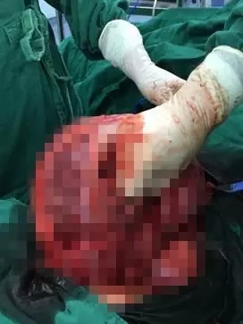 手術(shù)醫(yī)生術(shù)前討論包塊生長部位的位置,初步考慮是卵巢或者子宮上包塊腫物。隨著手術(shù)的進(jìn)行,我們發(fā)現(xiàn)了這個(gè)巨大而且實(shí)質(zhì)性包塊。由于事先手術(shù)切口較小,無法看到整個(gè)包塊的面貌。醫(yī)生當(dāng)即延長切口,發(fā)現(xiàn)整個(gè)包塊與腹膜、子宮、膀胱、陰道都有粘連。為了更安全的地取出整個(gè)包塊,醫(yī)生們進(jìn)行了長達(dá)2個(gè)小時(shí)的粘連松解,才使整個(gè)腫物露出原形。