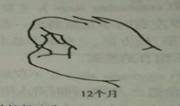 0~2個(gè)月個(gè)月:剛出生寶寶的雙手是握拳的,四只手指包住拇指,如果輕碰他的手掌,他會(huì)把拳頭握得更緊,2個(gè)月兩手握拳的緊張度逐漸降低