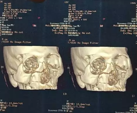 患者王某,因車禍致頭頜面部疼痛出血1小時入院,經(jīng)三維CT重建示:上頜骨lefortⅢ骨折,雙側顴骨復合體粉碎性骨折等。
