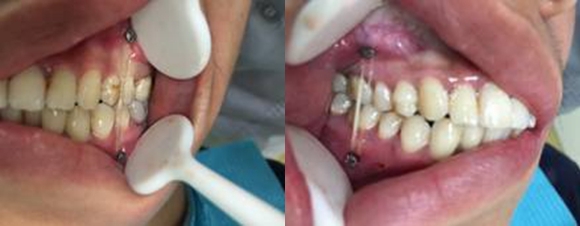 惠州市第三人民醫(yī)院頜面外科王俊文醫(yī)師了解病人情況及要求后,排除手術的可能性,建議患者保守行“頜間牽引釘多點多向牽引”,調整已移位骨折端及顳下頜關節(jié)相對位置以達到調整咬牙合關系的作用。對于這種保守治療的方法,病人欣然接受,經(jīng)過幾輪牽引釘位置變更牽引調整,咬牙合關系恢復良好。