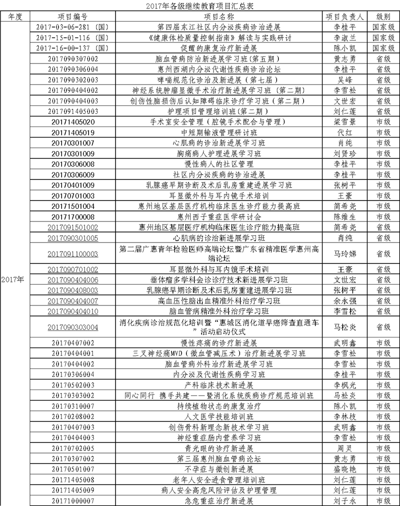 2017年各級繼續(xù)教育項目匯總表