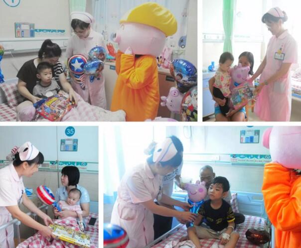 醫(yī)院特意“邀請”了熊本熊、麥兜豬、阿貍等一線卡通明星前來與孩子們歡度節(jié)日,為他們派送小禮物并合照留念;更有三院“人文愛心藝術(shù)團”強勢助陣,在兒科住院部舉行了一場溫馨而歡樂的迷你音樂會。