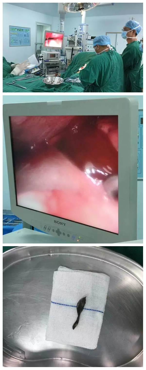 張陽春副主任醫(yī)師馬上通知手術(shù)室準備進行胸腔鏡探查手術(shù),術(shù)前告知我們患者在體位變動麻醉誘導(dǎo)時風(fēng)險較大,或尖銳金屬物刺進心包,或肺葉造成二次傷害,嚴重時要進行心臟修補或二次手術(shù)。