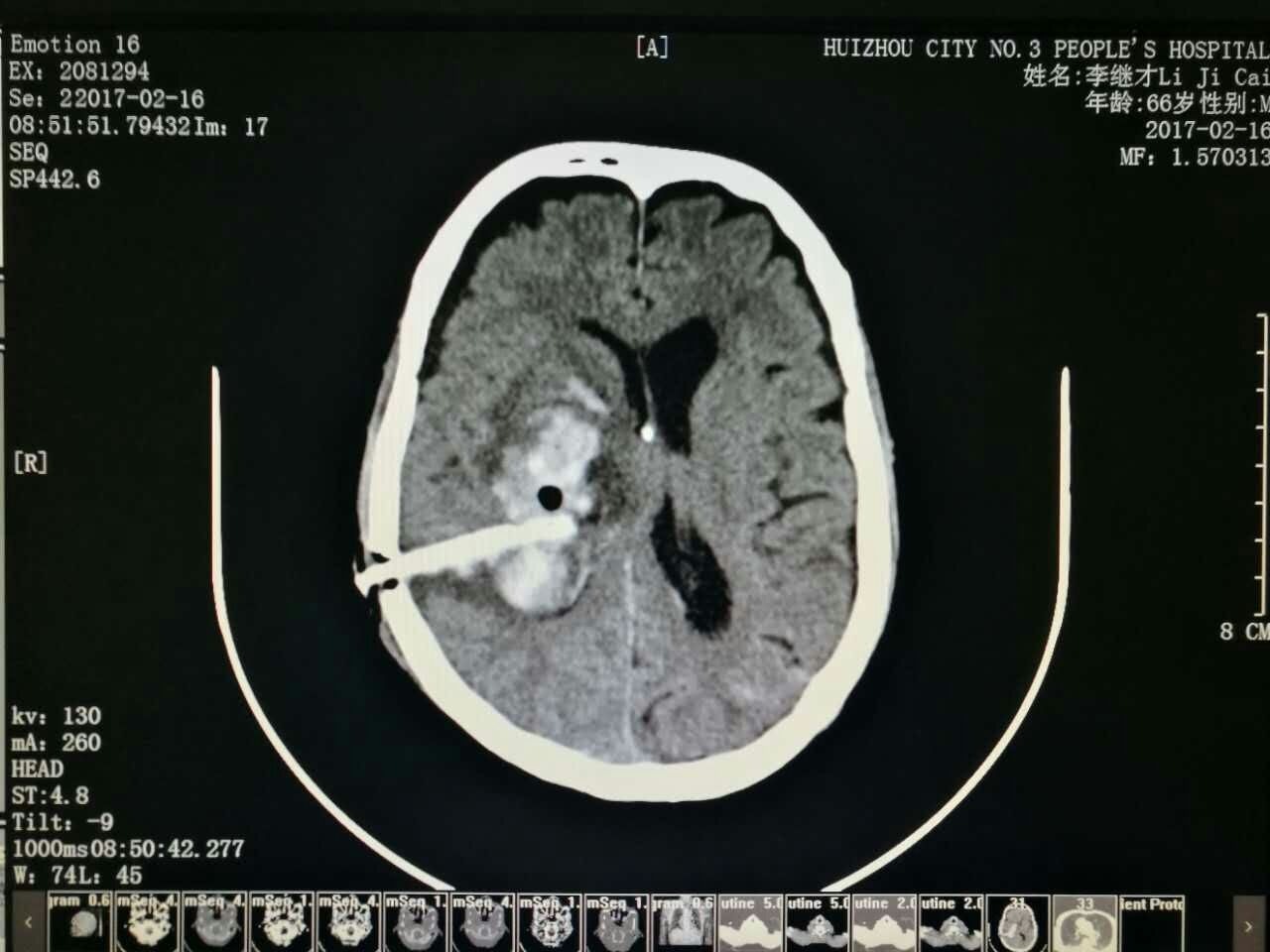 目前,神經(jīng)外科的立體定向君已成功服役了兩名患者,均為腦內(nèi)深部的血腫清除術(shù),手術(shù)成效頗佳。首秀由神經(jīng)外科手術(shù)經(jīng)驗豐富的余永強(qiáng)主任展開,通過精準(zhǔn)的術(shù)前規(guī)劃、精準(zhǔn)的影像定位,達(dá)到人機(jī)合一,一箭擊中靶心,讓血腫無處可逃。