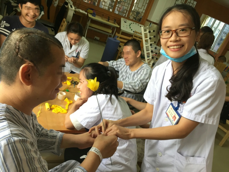 團(tuán)體治療是指治療師組織情況相似的患者以某個(gè)適合患者的作業(yè)活動(dòng)為主題一起進(jìn)行治療的治療活動(dòng),這個(gè)治療活動(dòng)相比傳統(tǒng)的一對(duì)一治療更加有趣味性和挑戰(zhàn)性。因?yàn)閭€(gè)人在小組中都有自己的角色,通過(guò)共同去做某件事情的過(guò)程,使患者在團(tuán)體中找回自己的動(dòng)力和角色的同時(shí),更加增加了患者康復(fù)的信心和面對(duì)生活的勇氣!