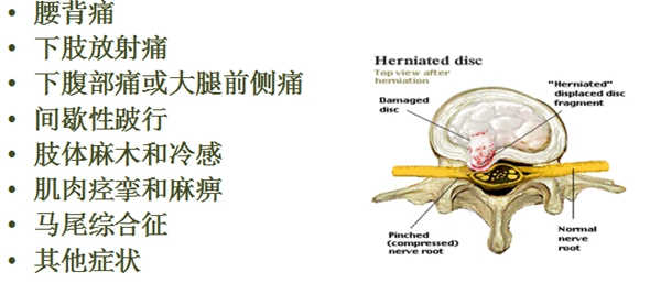 腰椎間盤突出癥主要是指腰椎的纖維環(huán)破裂和髓核組織突出壓迫和刺激相應(yīng)水平的一側(cè)和雙側(cè)坐骨神經(jīng)所引起的一系列癥狀和體征。