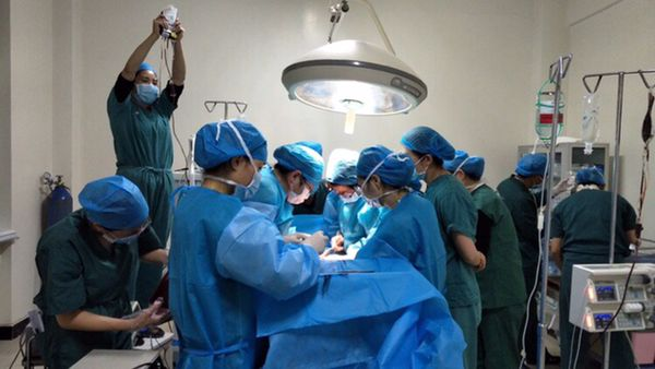 凌晨1點許,盛曉艷主任醫(yī)師,庹閩主任醫(yī)師及醫(yī)療總值聞訊迅速趕來醫(yī)院參加搶救。同時麻醉科,重癥醫(yī)學(xué)科,血液科及手術(shù)室等相關(guān)科室也做了相應(yīng)的準(zhǔn)備,積極配合搶救。在患者未交款的情況下,輸血科已快速聯(lián)系好懸浮紅細(xì)胞、冰凍血漿、冷沉淀及凝血因子。手術(shù)室也迅速將術(shù)前準(zhǔn)備好。搶救緊張有條不紊地進(jìn)行著,所有醫(yī)護(hù)人員都緊張地繃著心弦,在心里暗暗祈禱,無論如何一定要保護(hù)產(chǎn)婦生命。無影燈下,異常寧靜,醫(yī)生神情專注,手術(shù)刀和止血鉗在他們手術(shù)翻飛,器械護(hù)士不停地將各種器械遞到他們手中,時不時地傳出打手聲,在手術(shù)室中顯得格外響亮。手術(shù)結(jié)束時,既保留了子宮,又搶救了患者的生命。大家臉上都露出了欣慰的笑容。產(chǎn)婦家屬感激的連連道謝,庹閩醫(yī)師和藹地說:“救死是我們該做的,現(xiàn)在警報還未解除,隨時有可能再次發(fā)生出血,再次手術(shù)切除子宮的可能,希望家屬配合治療”。家屬感激的連連點頭。