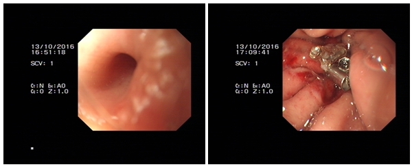 于是,在胃鏡室通過氬等離子凝固術(shù)(APC)對(duì)瘺口組織邊緣及周圍組織進(jìn)行磨損,使用鈦夾夾閉創(chuàng)面,患者第二天瘺口基本無胃液滲出,觀察兩天后痊愈出院,再也不用忍受胃液滲出的痛苦!