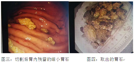 自制“碎石器”優(yōu)點:取材容易,可以利用使用過的一次性耗材制作,不用額外增加費用,圈套器收放自如,可以套取任意大小胃內(nèi)結(jié)石。利用內(nèi)鏡前端安裝透明帽作為支撐進行機械切割,術(shù)后麻醉清醒后即可開放飲食,次日出院,住院時間短,花費少!