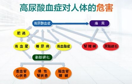 長(zhǎng)期高尿酸會(huì)造成痛風(fēng)性腎病,尿酸性腎石病,急性腎衰竭等。