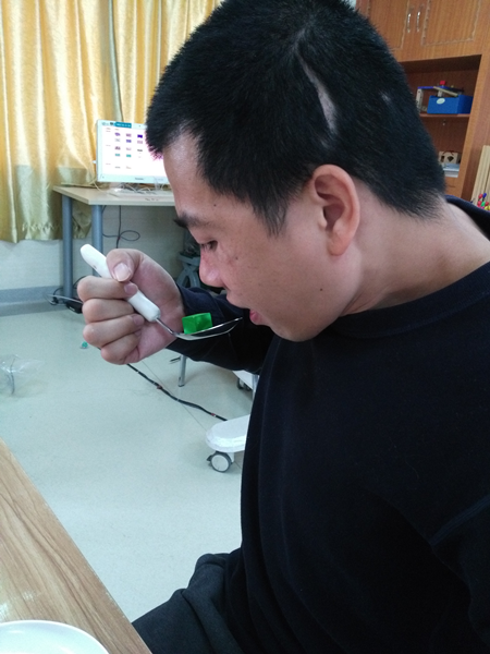 應(yīng)用特制彎加粗柄勺獨(dú)立進(jìn)食