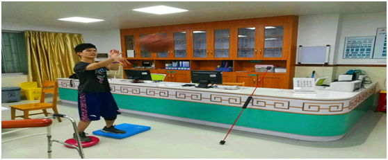 ●平衡協(xié)調(diào)訓練:安全走過坑洼路面,平衡板保持穩(wěn)定,較好完成一字步、米字步、弓箭步訓練。