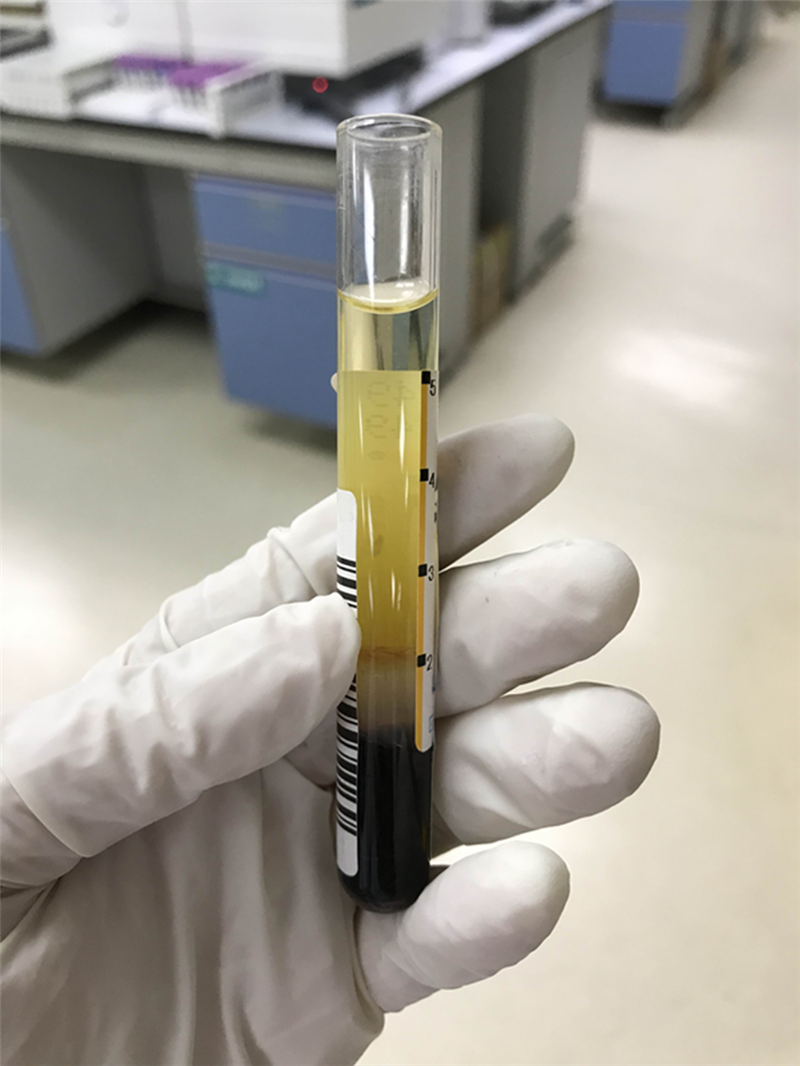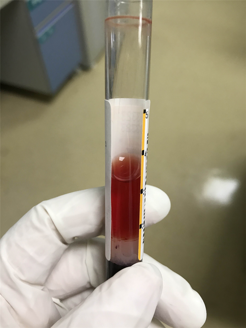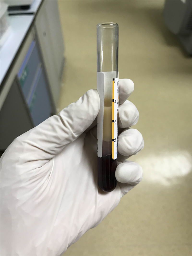 病例二:某日檢驗科生化快檢崗位簽收到慢性腎衰竭患者的生化8項急查標本,上機檢測后發(fā)現(xiàn)所謂結果全部偏低,工作人員懷疑標本不合格導致結果異常,一看血發(fā)現(xiàn)血細胞與血清的比例異常,正常來說,全血的組成是血細胞(45%)血清(55%)??赡苡捎诔檠灰?guī)范而導致結果偏低,該結果不能審核并發(fā)布,該標本需回退科室并重新抽血。