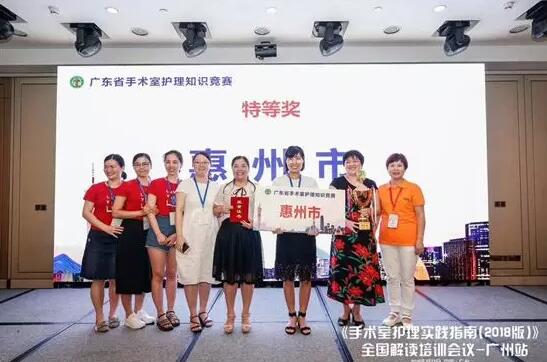 2018年7月8日下午,由廣東省護(hù)理學(xué)會手術(shù)室專業(yè)委員會主辦的廣東省手術(shù)室護(hù)理知識競賽在廣州舉辦,惠州市代表隊(duì)以領(lǐng)先第二名60分的零失誤佳績,擊敗28個省市隊(duì)伍的精英,摘得桂冠,榮獲特等獎!