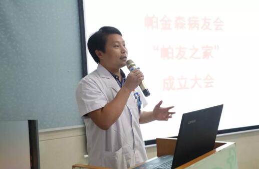 揭牌儀式后,常保強(qiáng)博士為大家普及帕金森病的相關(guān)知識。他指出,帕金森病是一種終生性疾病,患者除了治療以外,還需要家屬給予更多的關(guān)愛和鼓勵,使其最大限度地恢復(fù)健康。