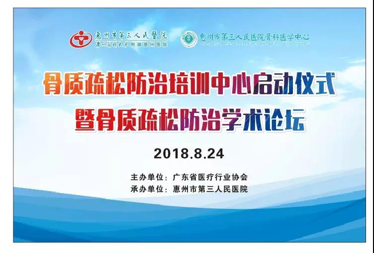 由廣東省醫(yī)療行業(yè)協(xié)會(huì)主辦,惠州市第三人民醫(yī)院承辦的“廣東省醫(yī)療行業(yè)協(xié)會(huì)惠州市第三人民醫(yī)院骨質(zhì)疏松防治培訓(xùn)中心啟動(dòng)儀式暨骨質(zhì)疏松防治學(xué)術(shù)論壇”將于2018年8月24日(周五)在惠州市第三人民醫(yī)院召開(kāi)。
