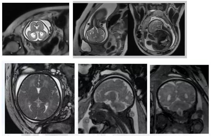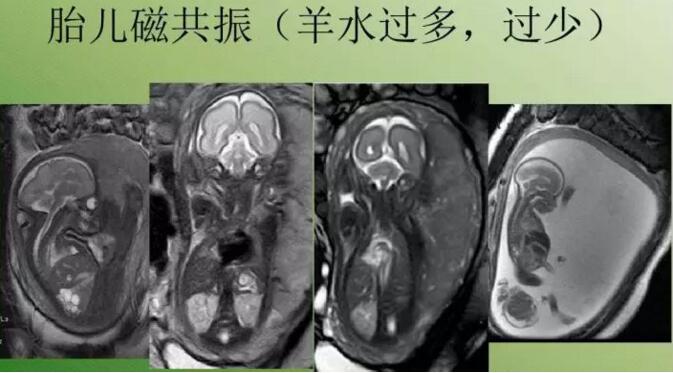 磁共振檢查不受胎兒骨骼及羊水量的影響,對胎兒中樞神經(jīng)系統(tǒng)、羊水過少、雙胎、孕周較大時顯示很好,特別是孕晚期胎頭入盆或胎兒顱骨骨化時。