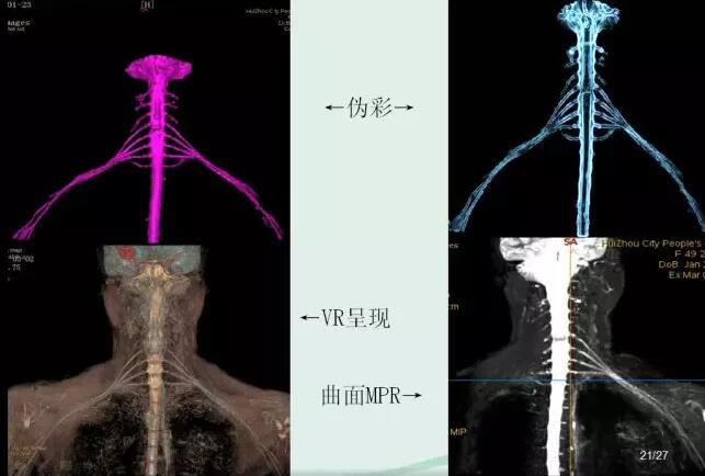 磁共振成像新技術(shù)做出來的圖像可清晰地顯示臂叢神經(jīng)全貌及周圍組織結(jié)構(gòu)關(guān)系,能顯示神經(jīng)根的撕裂,還能同時顯示合并存在的脊膜膨出、腦脊液外漏、脊髓出血、水腫等。