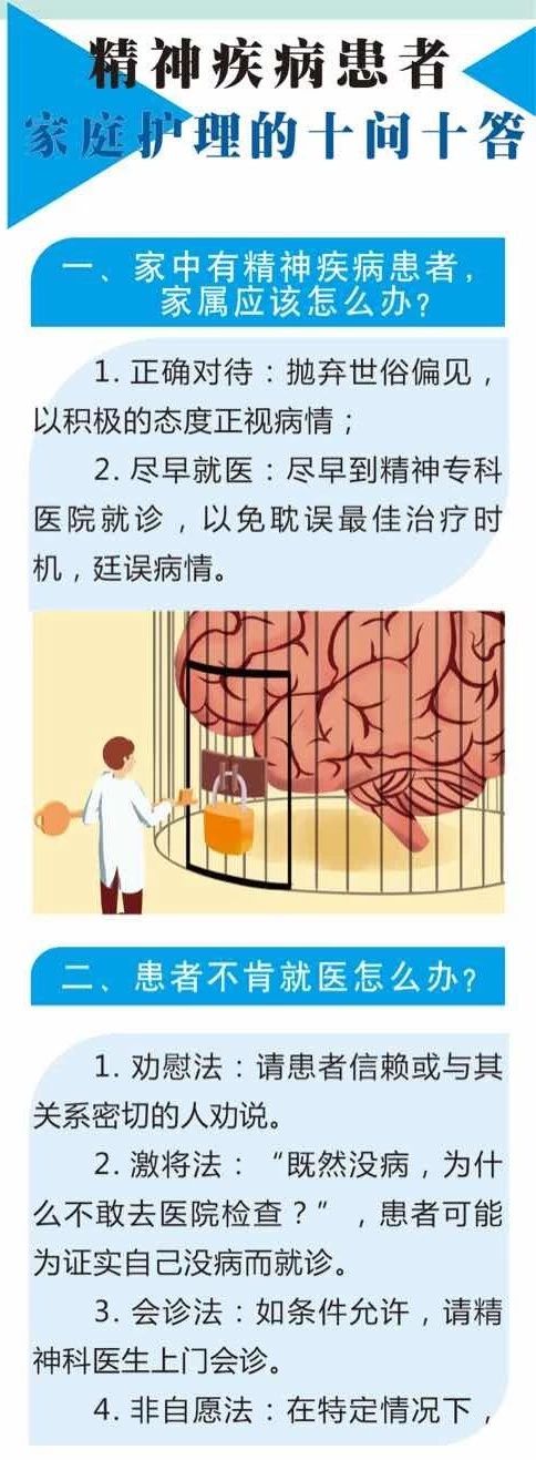 心理健康是身體健康的精神支柱,良好的情緒狀態(tài)可以使生理功能處于最佳狀態(tài),反之則會降低或破壞某種功能而引起疾病。那么,如何識別心理疾病,如何應對?精神疾病的患者又如何護理呢?下面小編就為大家科普一下: