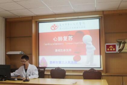 按照“急救白金十分鐘”的醫(yī)學(xué)理念,惠州三院急診科胡斌云醫(yī)師講解了在急診醫(yī)生趕到之前,基層醫(yī)務(wù)人員應(yīng)如何在黃金時間內(nèi)為呼吸心跳驟停的患者正確實施心肺復(fù)蘇術(shù)。