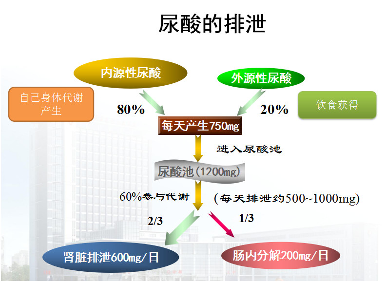 其實,尿酸并不是完全由飲食獲得的,我們體內(nèi)有很多代謝可以產(chǎn)生尿酸。