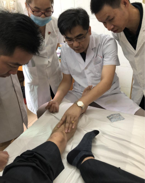 康復醫(yī)學中心曾飛翔主任為患者答疑解難,并進行中醫(yī)辯證檢查